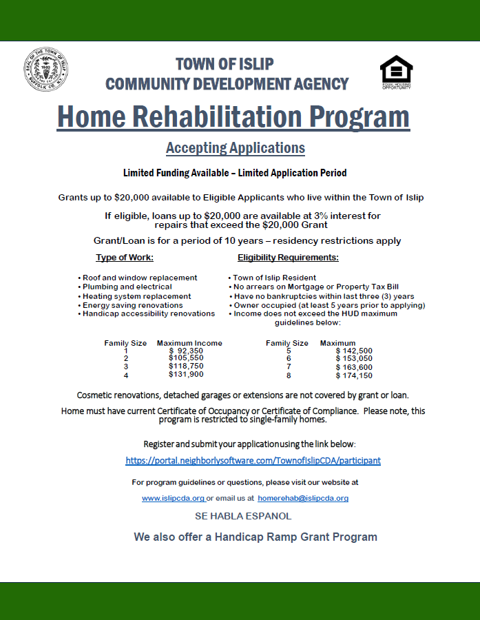 The Town of Islip CDA has completed the Town’s 2024-2025 Consolidated Annual Performance and Evaluation Report (CAPER).